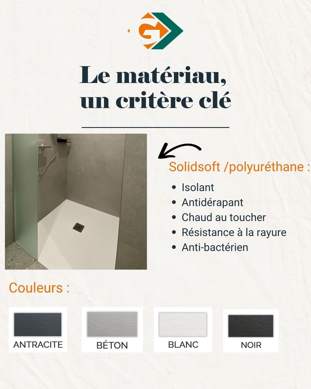 Un bon sol de douche doit être :