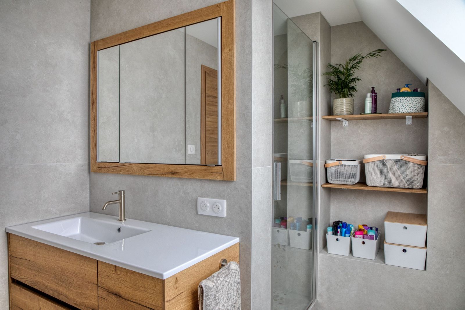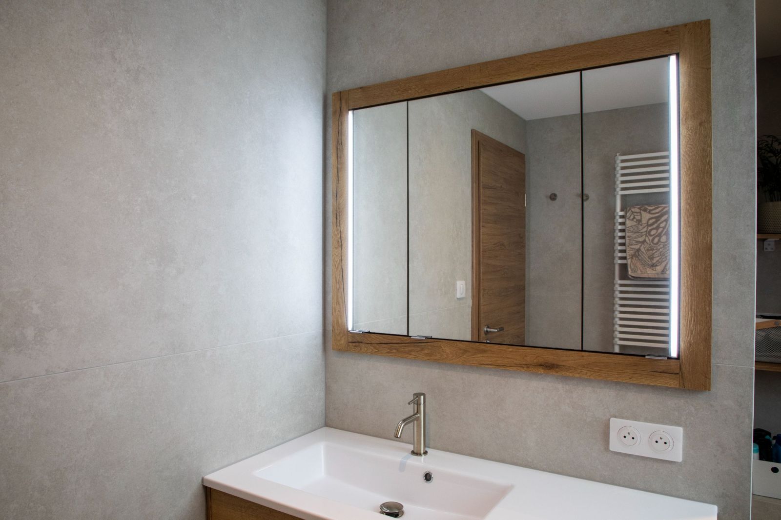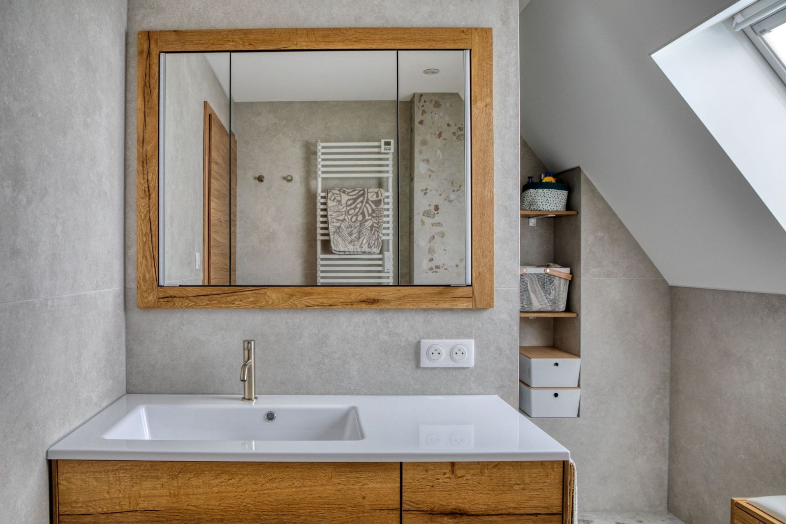 GERBER, spécialiste Carrelage, Salle de Bain et Terrasse, a transformé cette salle de bain en un espace à la fois moderne, chaleureux et parfaitement optimisé.Travaux réalisés :