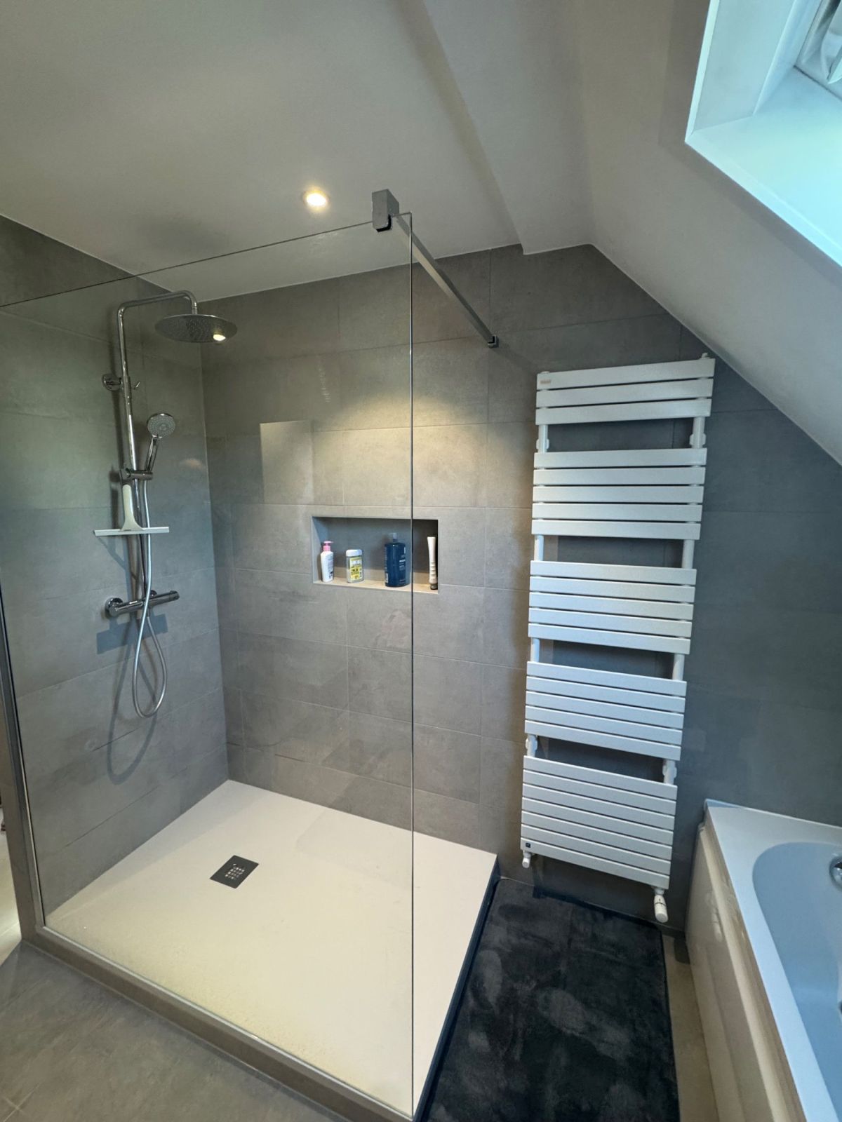 Rénovation partielle d’un espace bain avec douche et baignoire