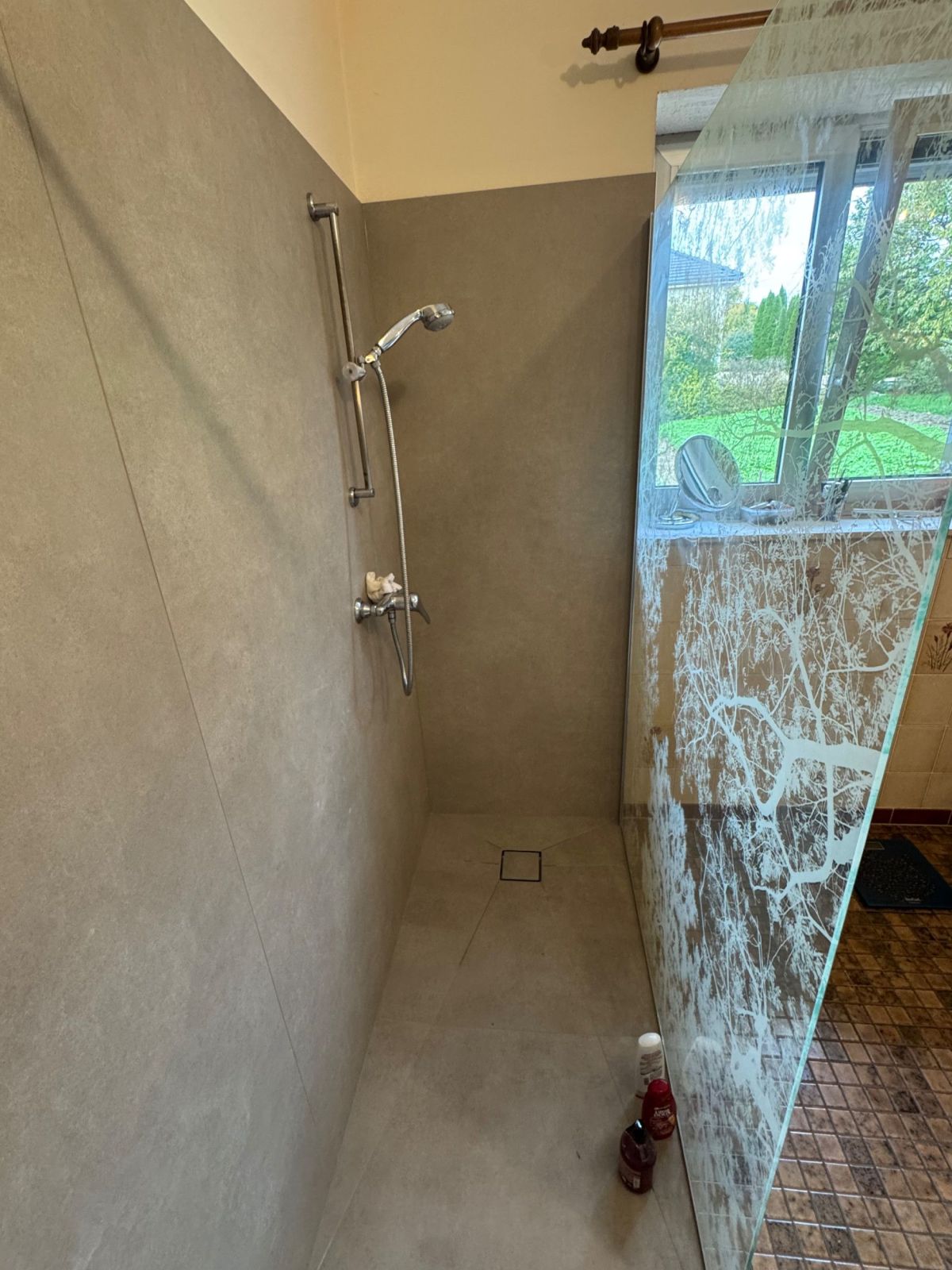 Le nouveau revêtement minéral, aux tons sable subtils, confère à cette douche un style à la fois discret et haut de gamme. Une solution idéale pour moderniser une salle de bain sans engager une rénovation complète.