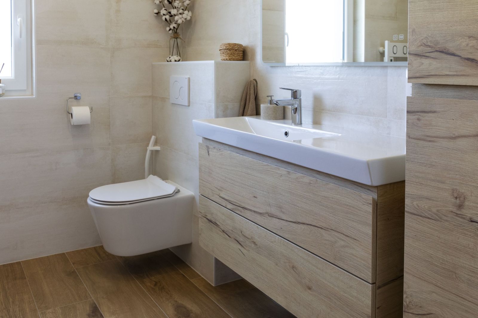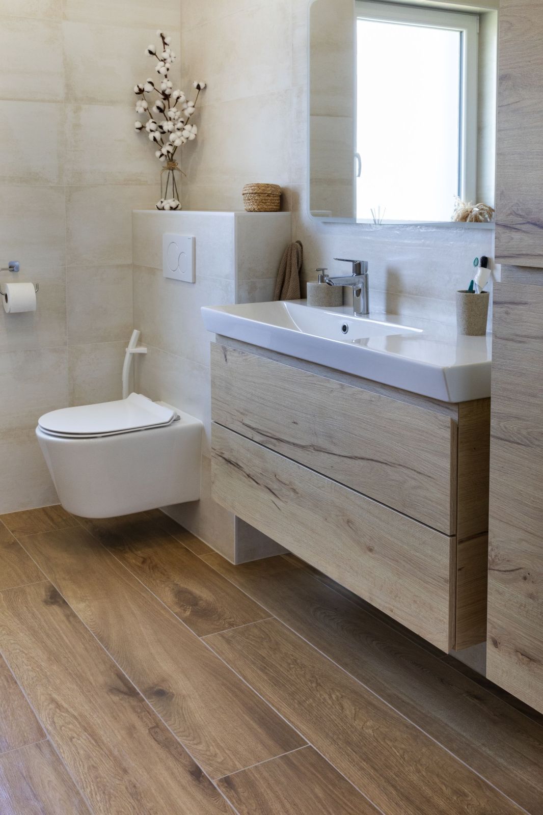 Une Salle de bain bois & beige, chaleureuse et pratique