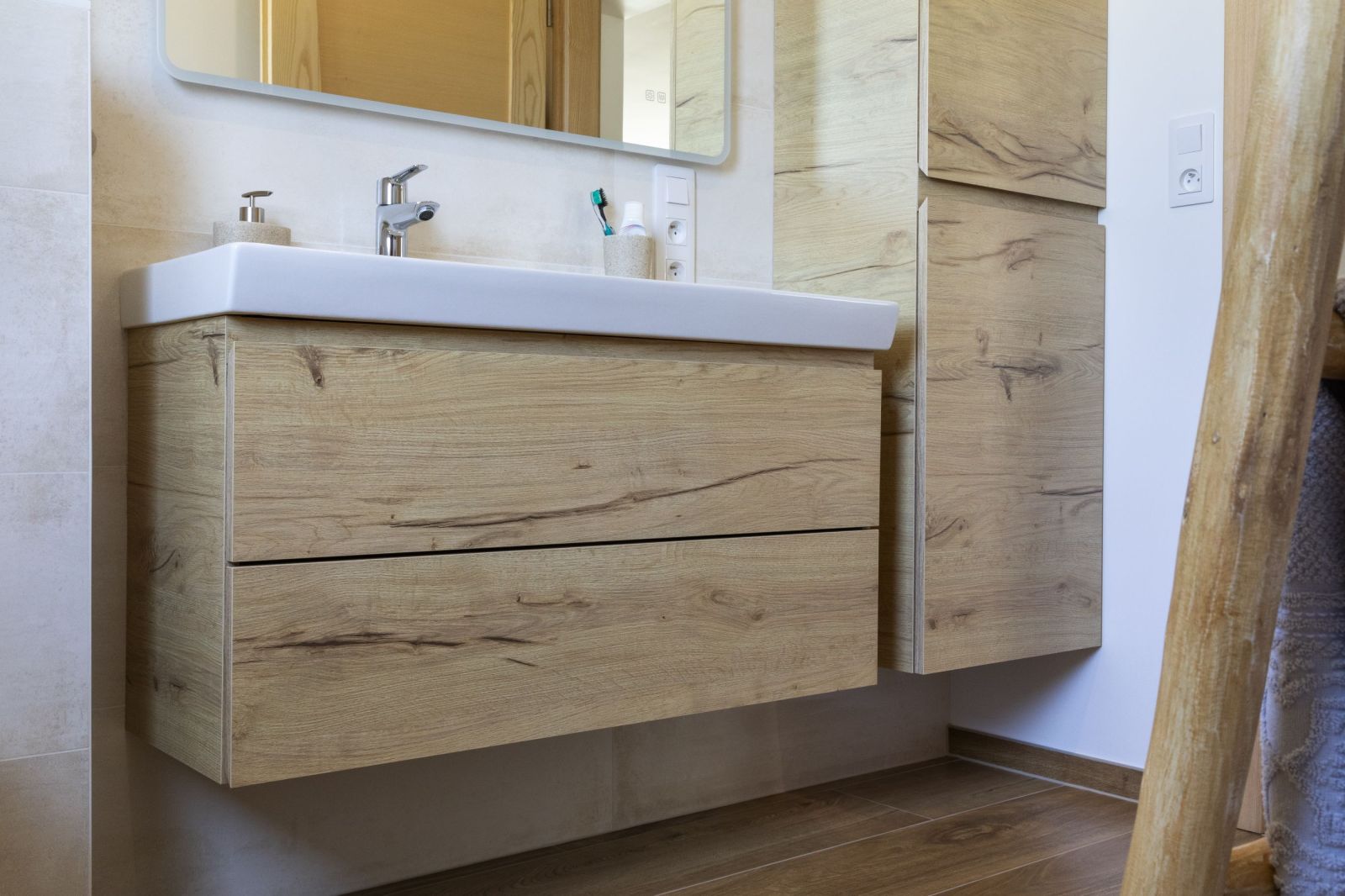 Salle de bain bois et beige
