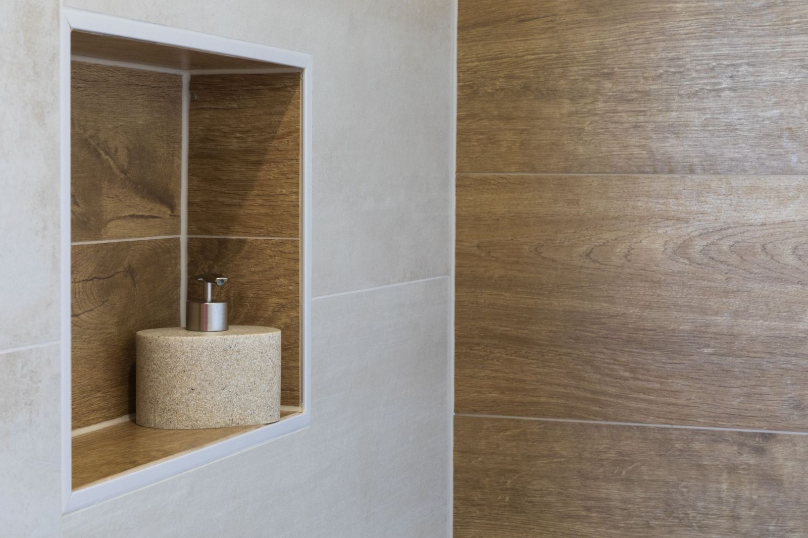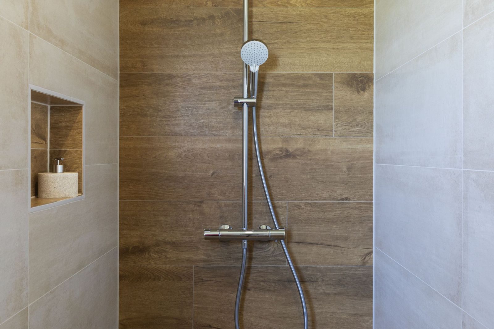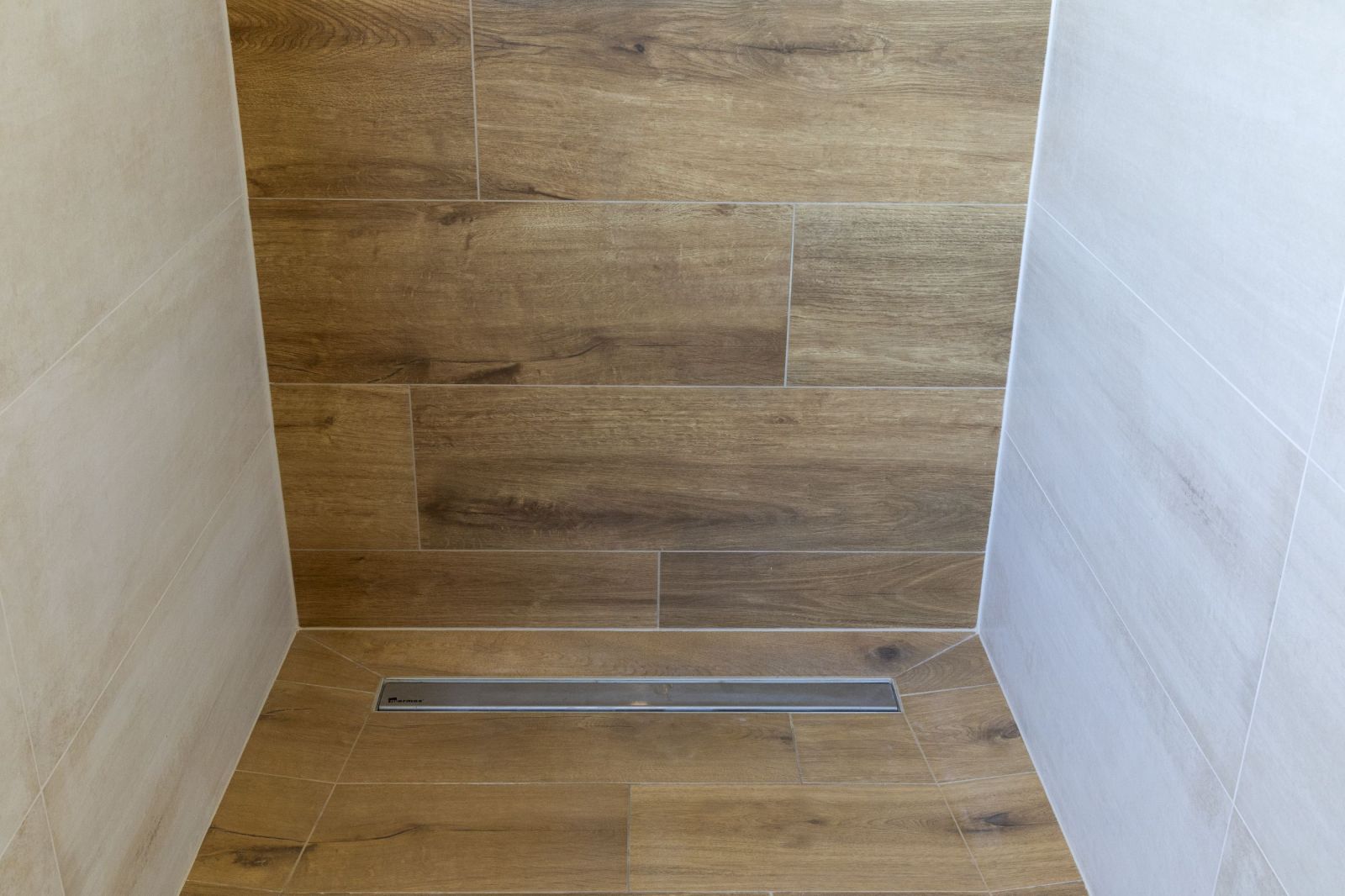 • Carrelage imitation bois posé dans la douche COLLECTION KAO