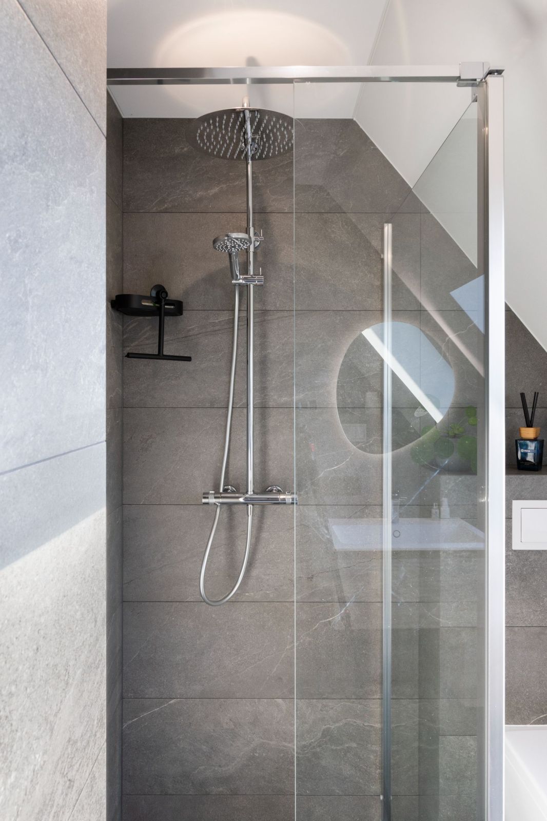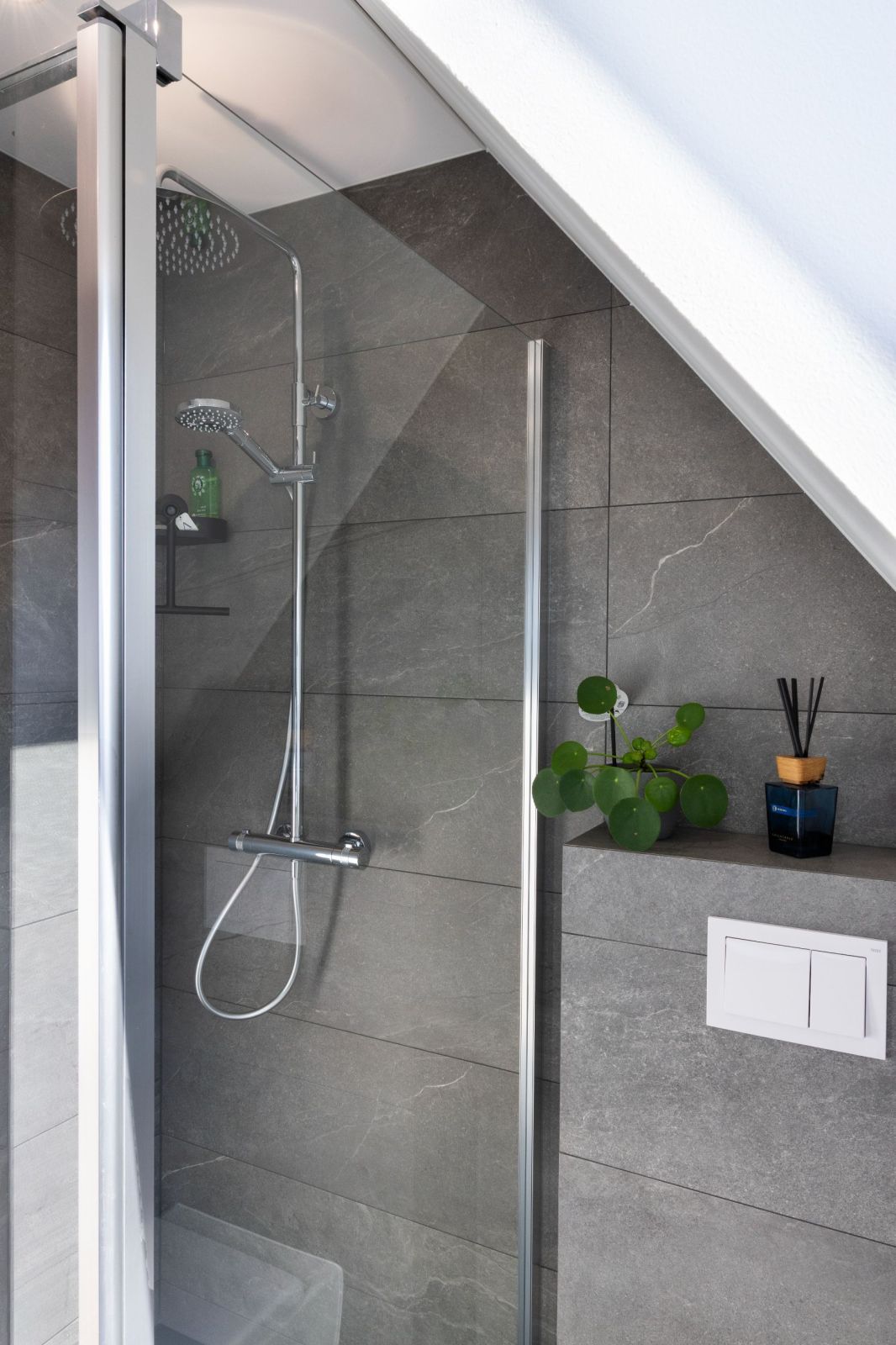 Pour ce projet réalisé à Dossenheim Kochersberg, nos clients souhaitaient moderniser leur espace sous combles avec une ambiance contemporaine, épurée et fonctionnelle. L’objectif : créer une salle d’eau design avec douche spacieuse, optimiser les volumes et intégrer des équipements durables et élégants.
