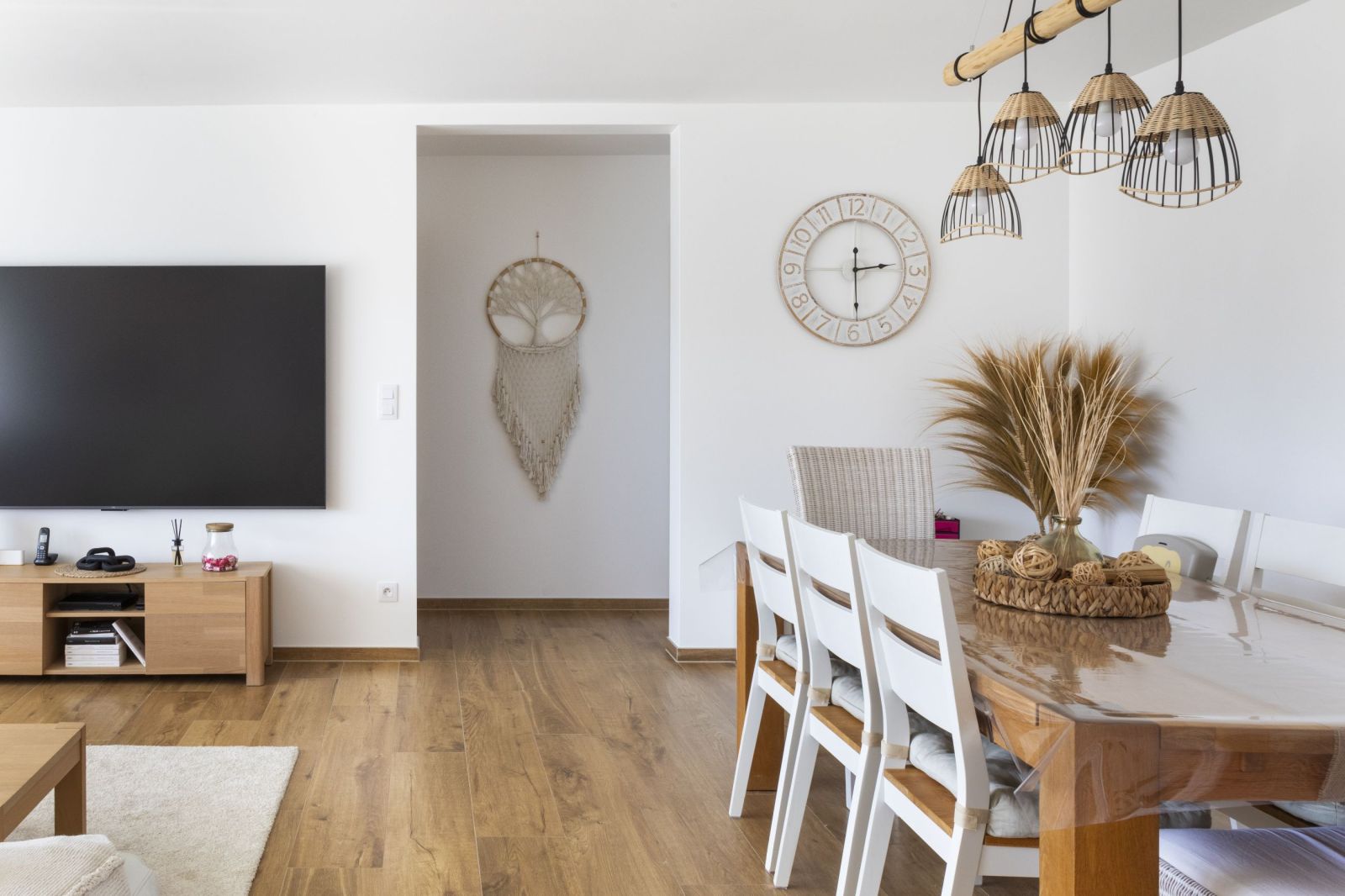 Ce sol transforme l’espace en un havre chaleureux et apaisant, idéal pour une maison pleine de vie et de caractère. Chaque détail a été pensé pour allier esthétisme, confort et durabilité.