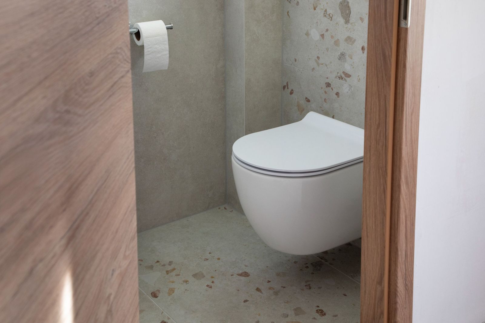Création d’un WC suspendu blanc brillant, discret et facile d’entretien