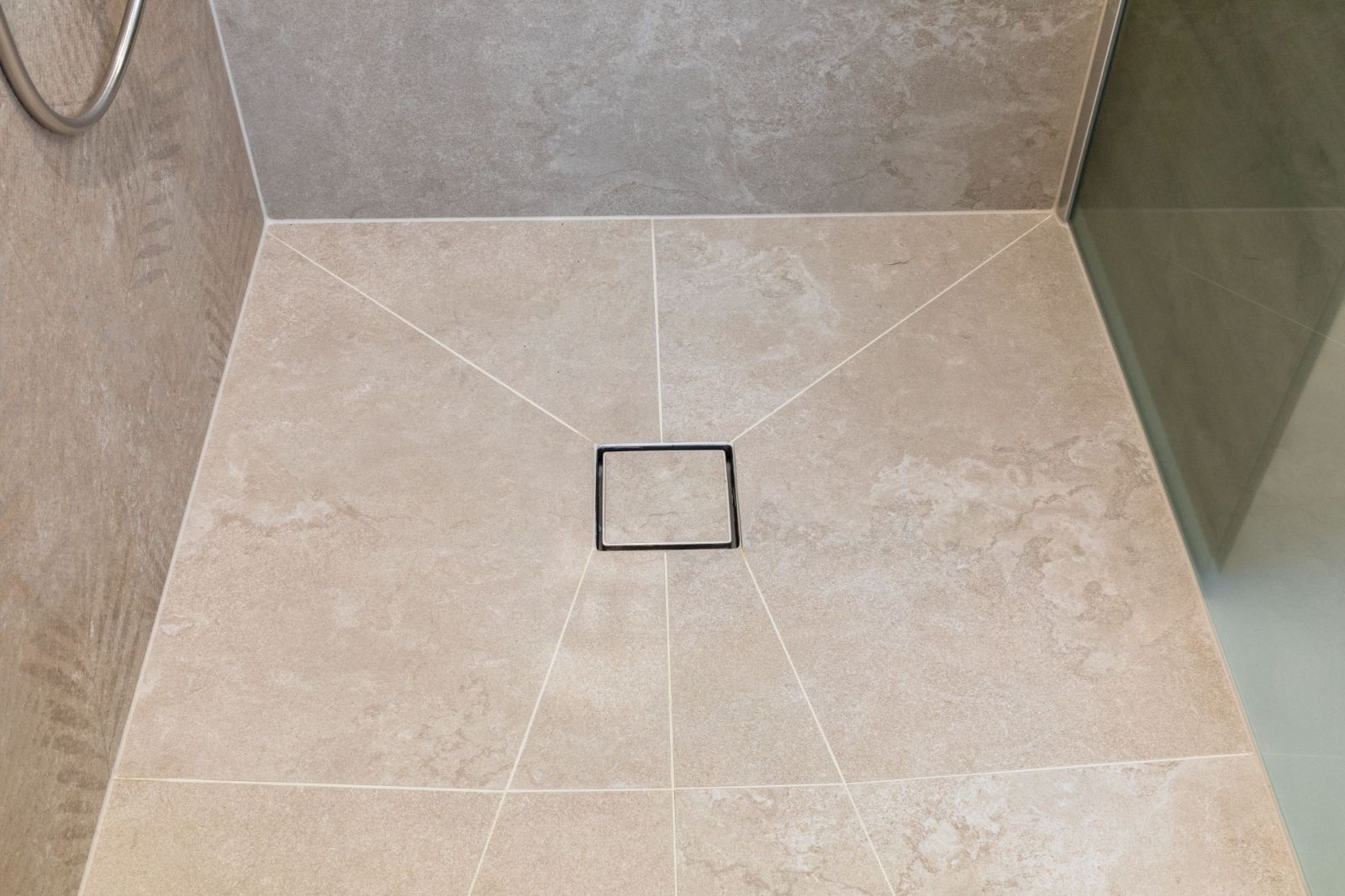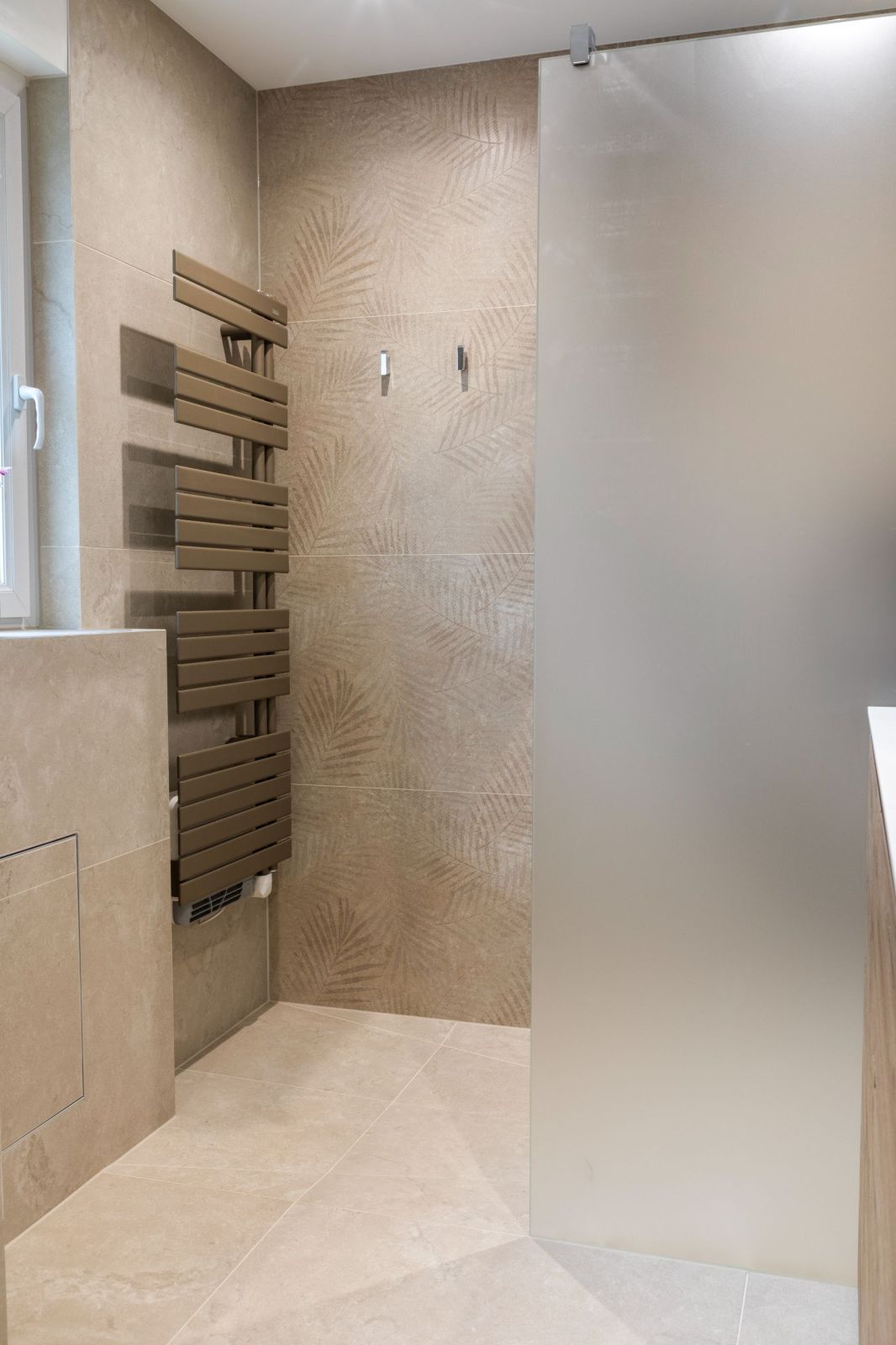 Création d’une douche à l’italienne discrètement délimitée par une paroi vitrée satinée