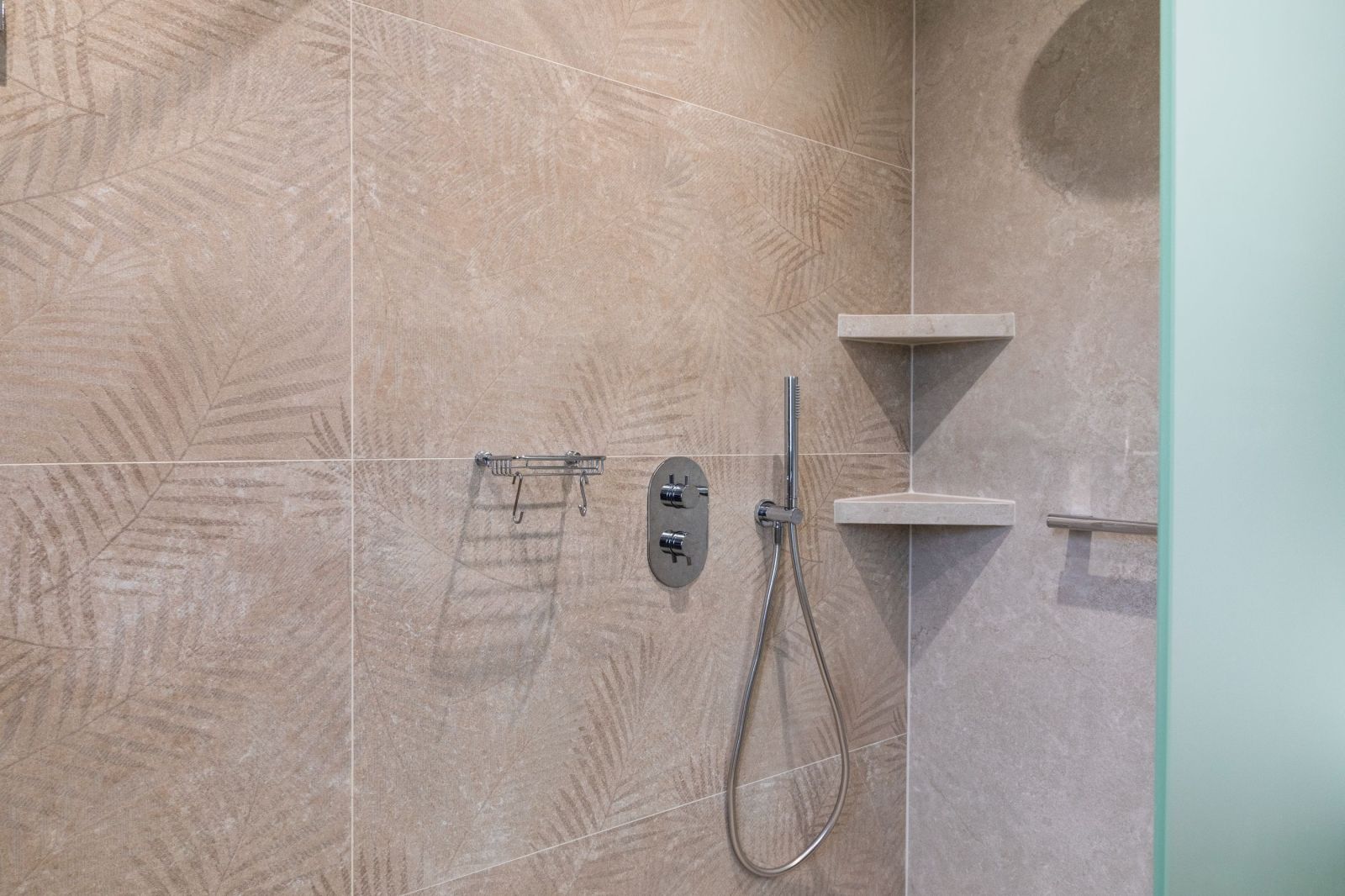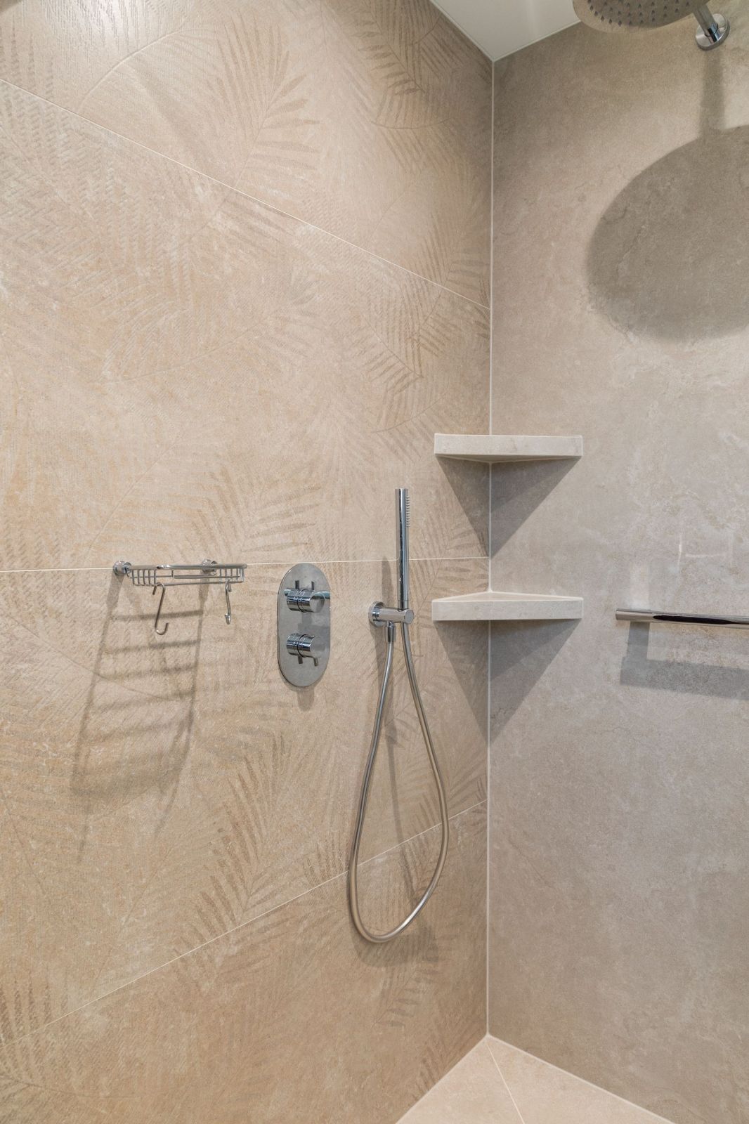 Bella Stone Decor Cream, qui apporte une texture subtile et végétale à l’espace douche