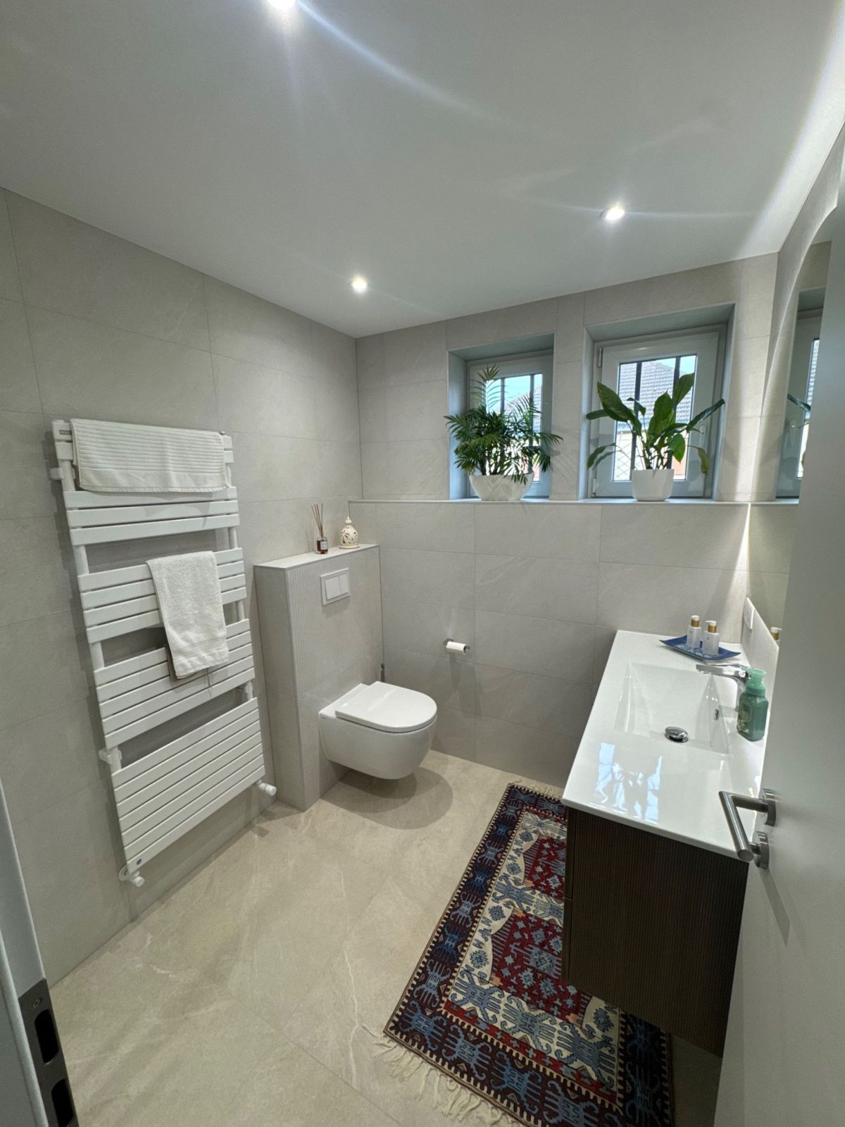 • L’intégration discrète d’un WC suspendu et d’un radiateur sèche-serviettes
